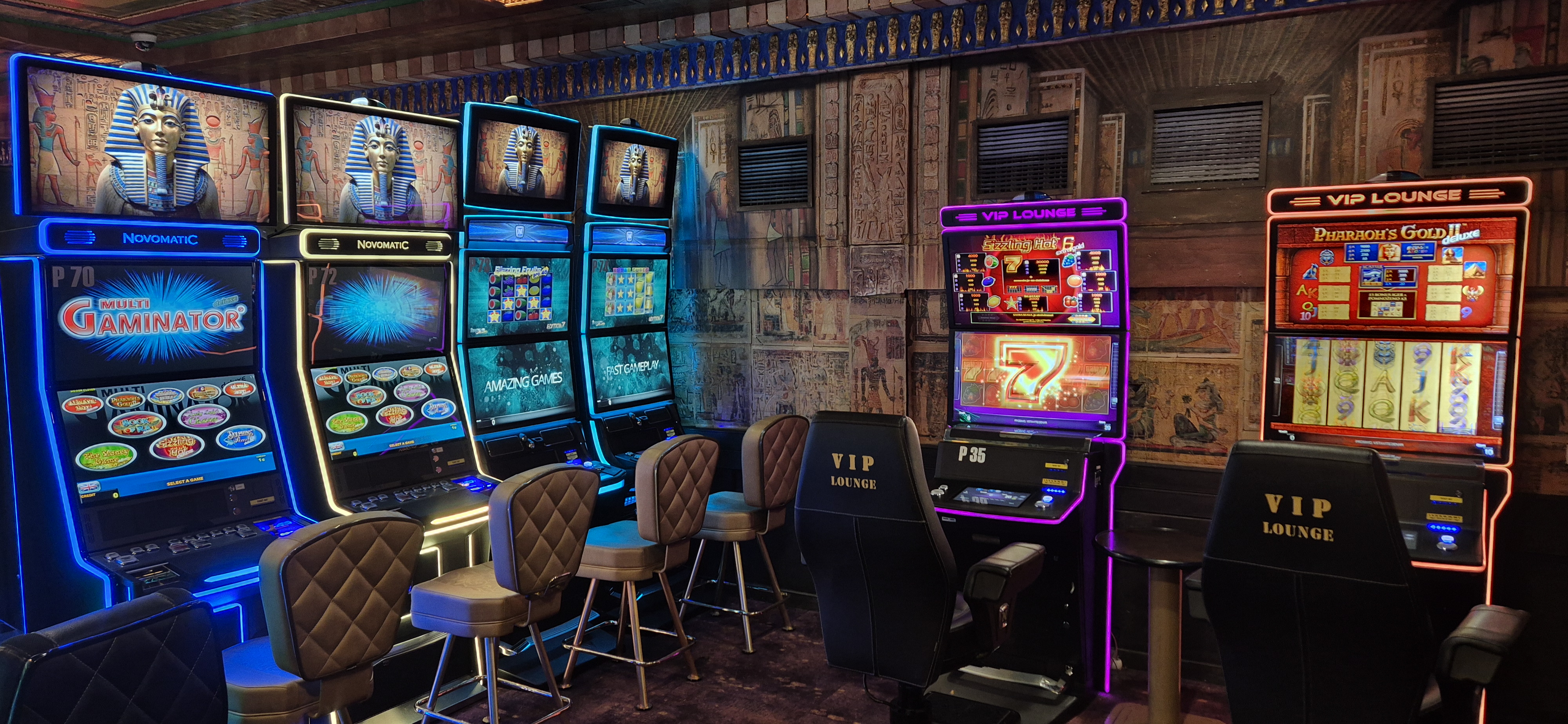 Igralni salon CASINO FARAON, je v prostorih sedanjega hotela FARAON Celje ***, začel delovati leta 2004. Celoten ambient je urejen na temo starega Egipta. Ob vstopu v prostore casinoja vas bo pričakalo prijetno osebje ter občutek življenja v piramidah, saj so prostori oblikovani v stilu blišča kot so ga poznali v časih starega Egipta. Notranjost igralnega salona je poslikana z risbami in figurami s kakršnimi so bile poslikane grobnice piramid v starem Egiptu, v razkošju zlatih barv.